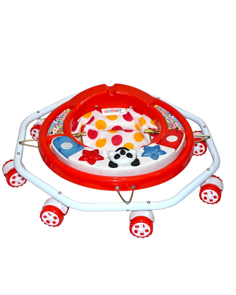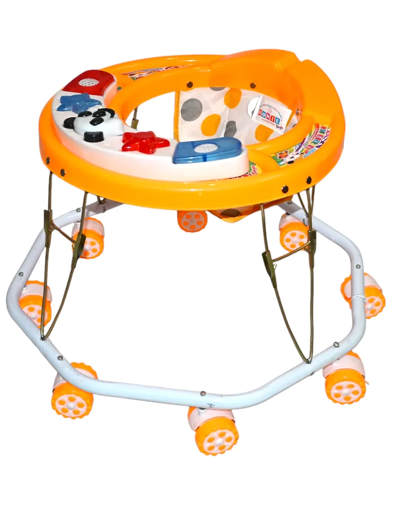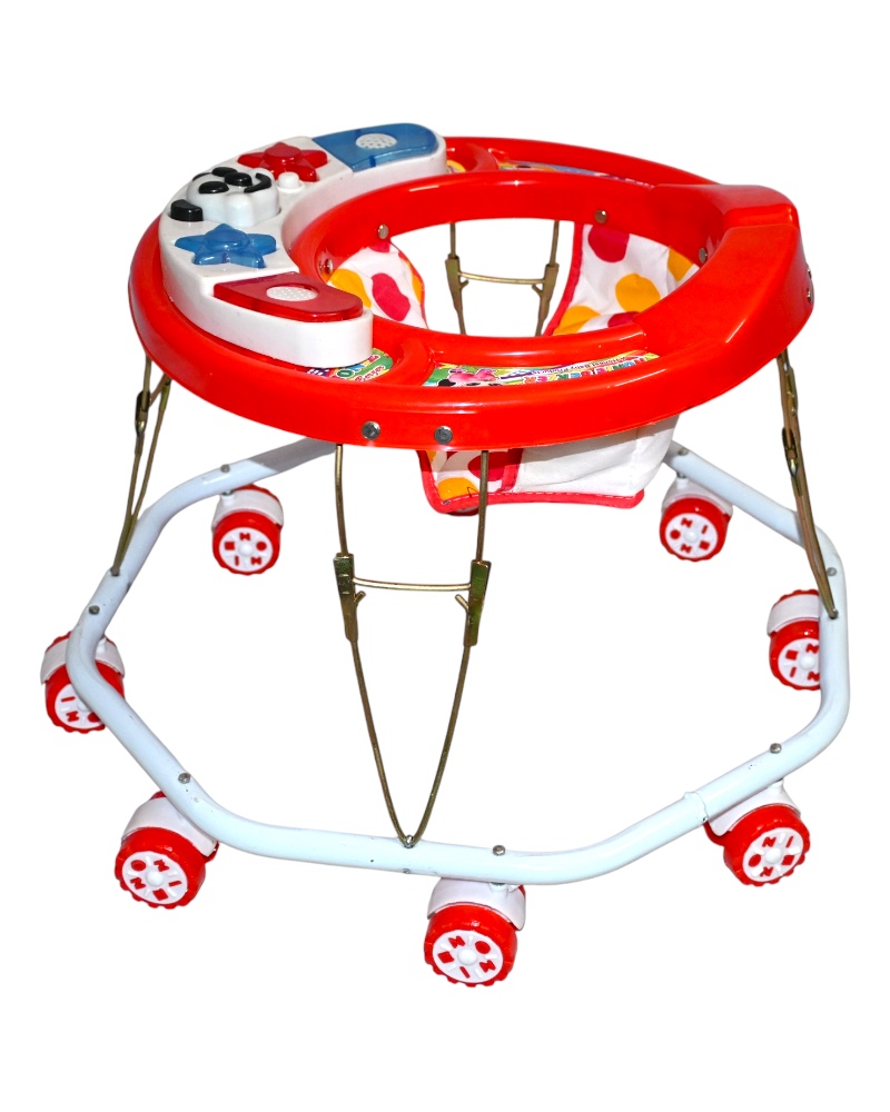 A strong and colorful baby walker with 8 swivel wheels, a padded seat, and a fun activity tray — designed to support your baby’s first steps with comfort and safety.