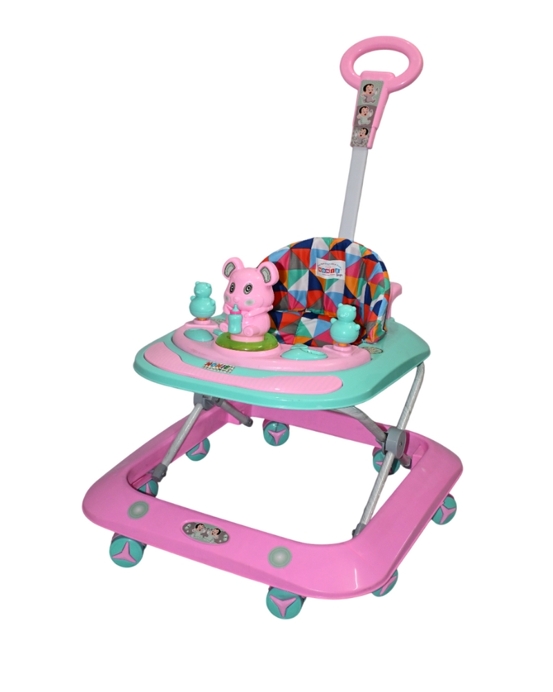 Milo Adjustable Baby Walker with Parent Push Handle, Colourful Activity Tray, Geometric Pattern Seat